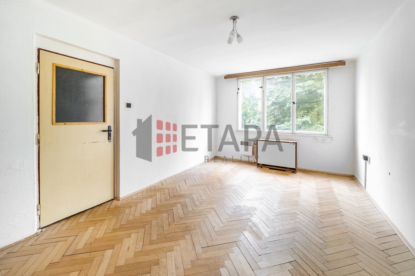 Současná dispozice zahrnuje vstupní chodbu, prostorný pokoj, kuchyni se vstupem na balkón a koupelnu s vanou, bojlerem a toaletou. Umyvadlo je umístěno v prostoru před koupelnou. Okna i balkónové dveře jsou původní špaletová. Vytápění bylo řešeno akumulačními kamny a přímotopem, přičemž v pokoji je přístup do komína, takže je možné instalovat krbová kamna, případně zvolit jiné moderní řešení, například elektrický kotel. Měsíční náklady na bydlení jsou velmi nízké – 1 200 Kč + elektřina a vytápění dle zvoleného způsobu.