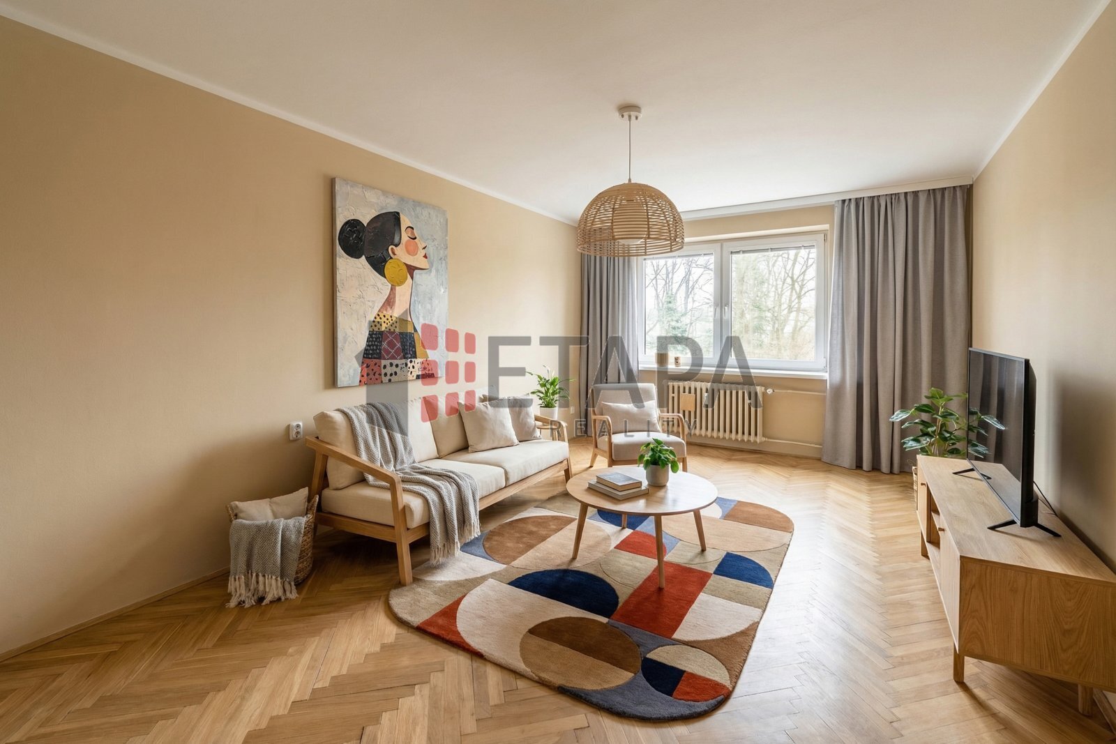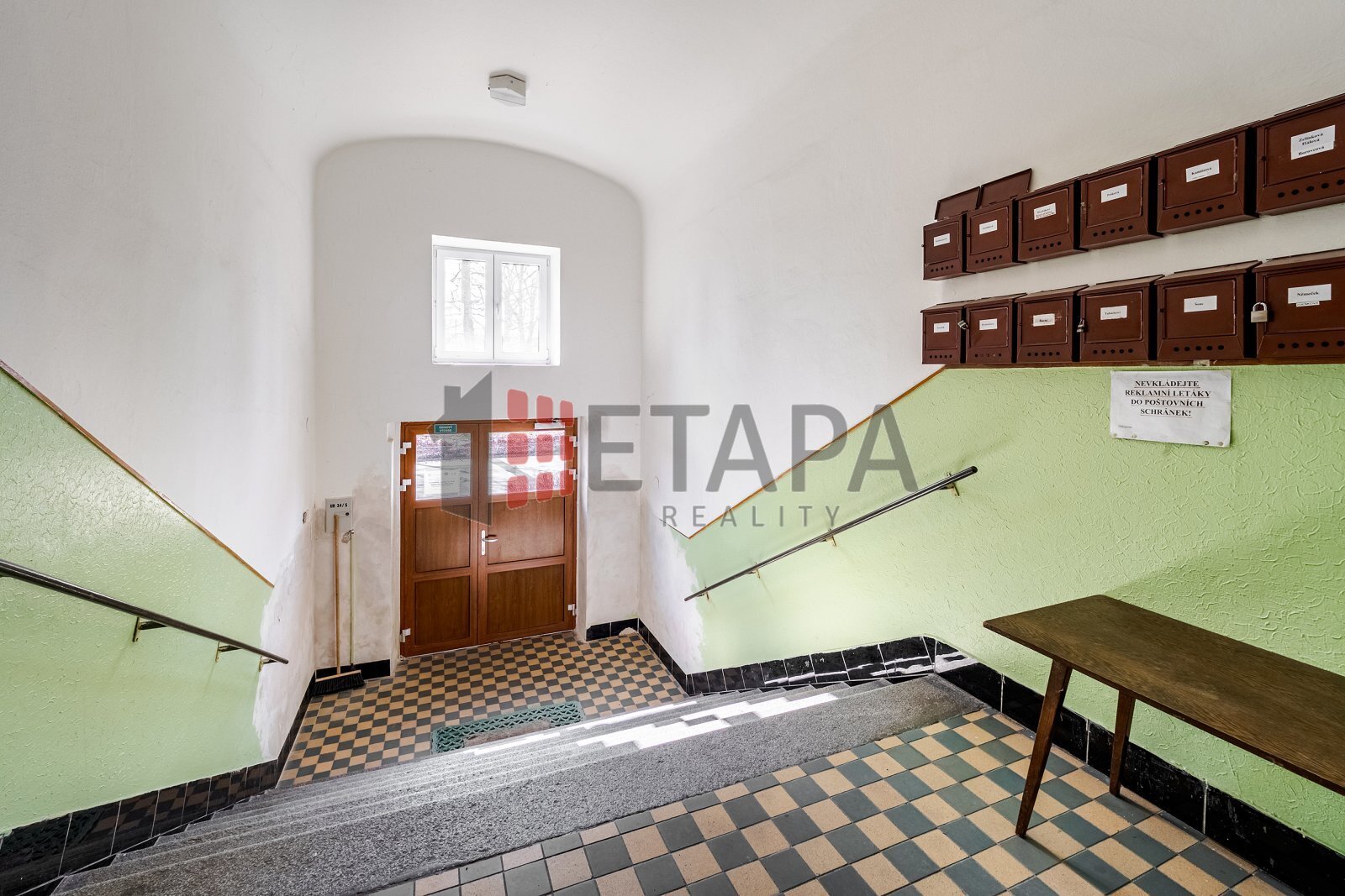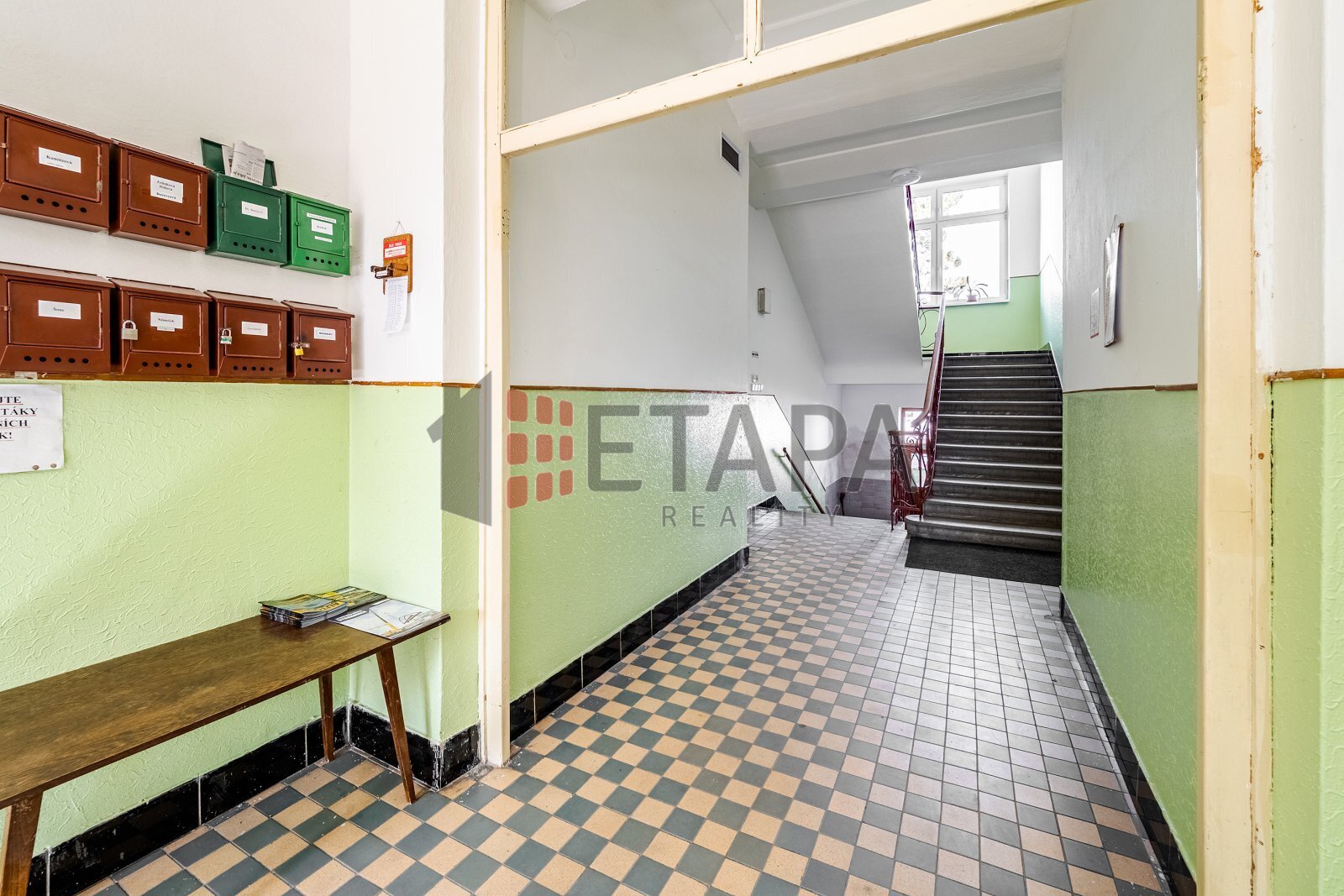 Ze společné chodby domu vstoupíte do předsíně, která je sdílená pouze se sousední jednotkou. Následuje vstup do bytu, kde se nachází chodba propojená s kuchyní, dva světlé pokoje orientované na jih s výhledem do Rennerových sadů, koupelna, samostatná toaleta a komora (šatna). V pokojích jsou původní parkety. K bytu náleží také prostorný zděný sklep v 1. PP o velikosti 8 m².