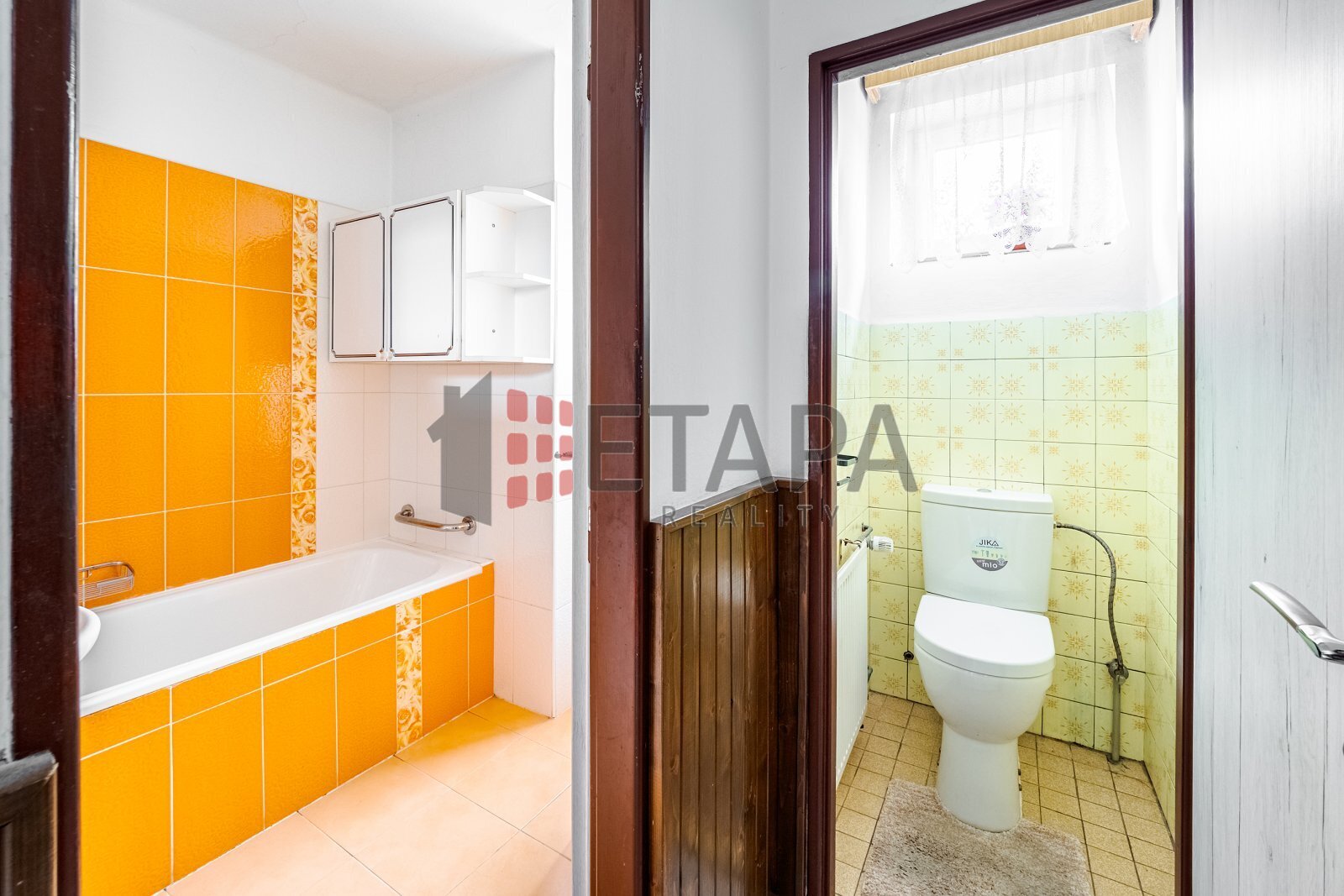 V přízemí se nachází garáž, kotelna s dílnou, koupelna se sprchovým koutem, umyvadlovou skříňkou a toaletou, sklad, vstup do sklepa a jeden samostatný pokoj. Po pohodlném schodišti se dostanete do patra, kde je prostorný obývací pokoj s balkónem a pěkným výhledem, kuchyně s komorou a kuchyňskou linkou, ložnice, dětský pokoj, druhá koupelna s vanou a umyvadlem, samostatná toaleta a vstup na půdu.